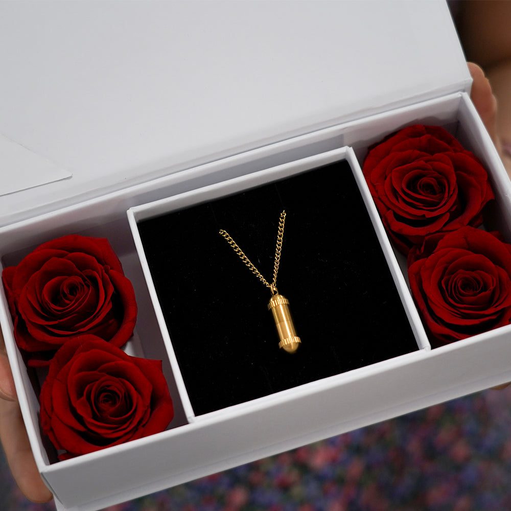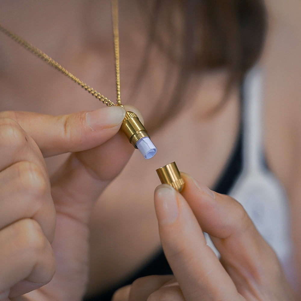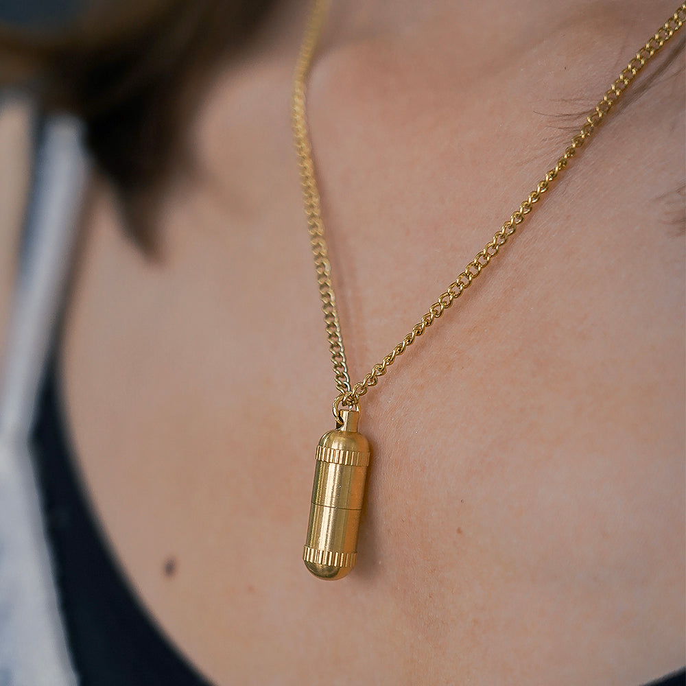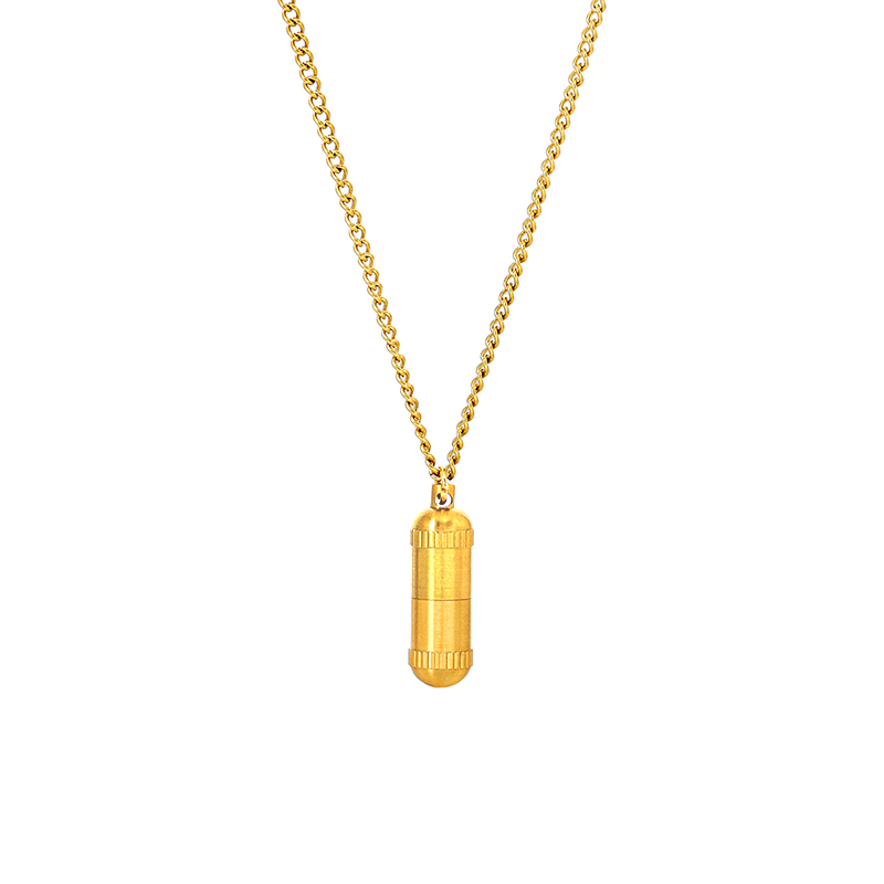 Realizzata a mano in acciaio inossidabile 316L con finitura dorata, la collana Manifestation capsule è progettata per durare tutta la vita.