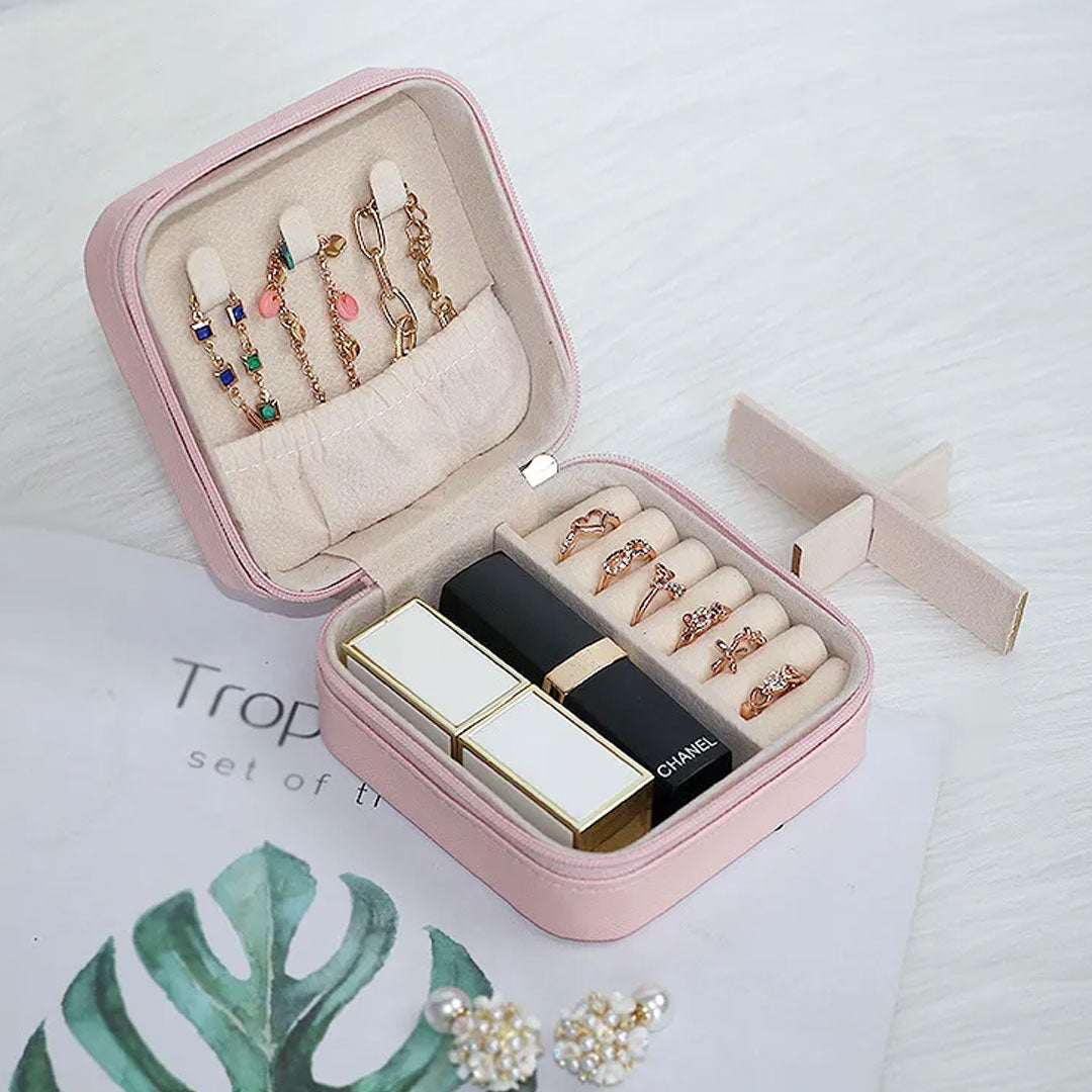Wzbogać swoje wrażenia z podróży dzięki naszemu podróżnemu etui na biżuterię. Zaprojektowana z myślą o uporządkowaniu i ochronie najcenniejszej biżuterii, ta kompaktowa kasetka zapewnia bezproblemową podróż. Z dedykowanymi miejscami na pierścionki, naszyjniki i kolczyki, jest miejsce na wszystko. Ponieważ Twoja biżuteria również zasługuje na pierwszorzędne wrażenia z podróży. ✈️💍.